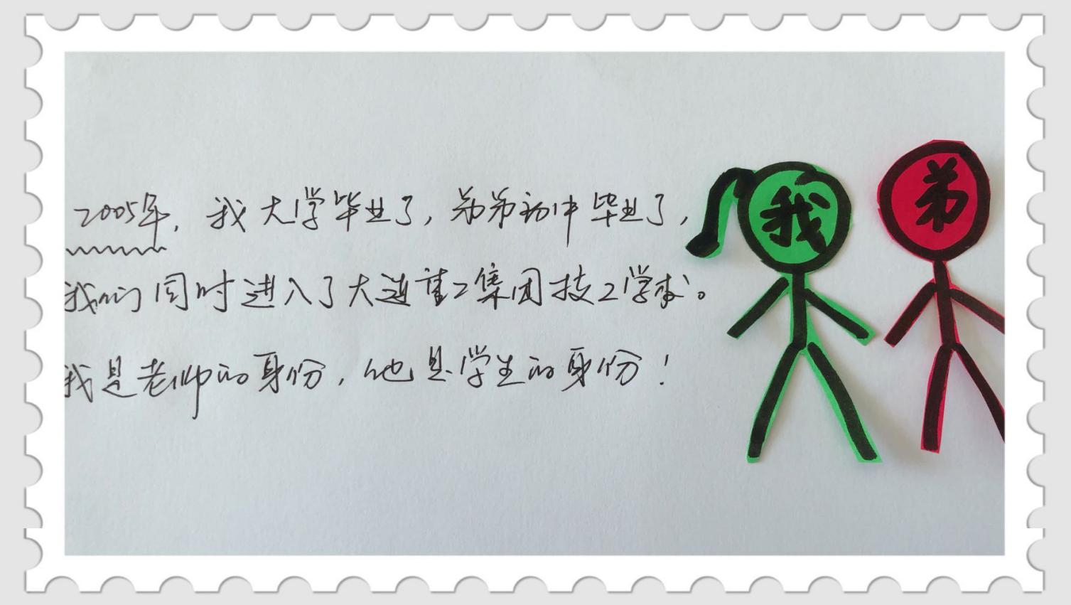 2005年——我大學(xué)畢業(yè)了,弟弟初中畢業(yè)了,我們同時(shí)進(jìn)入了大連重工集團(tuán)技工學(xué)校。我是老師,弟弟是學(xué)生!